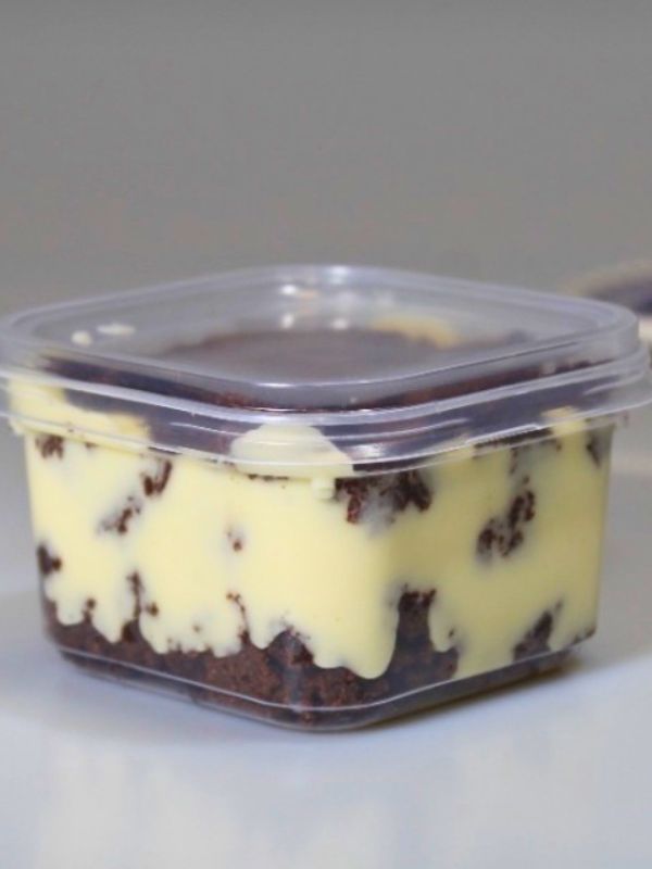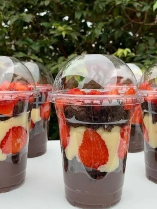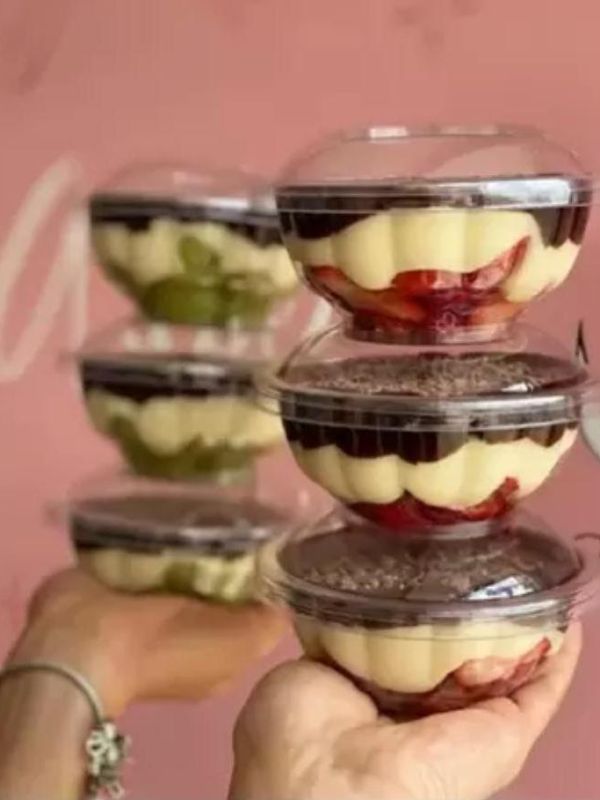 - Embalagens transparentes que permitem que os clientes vejam as camadas irresistíveis dos seus bolos.